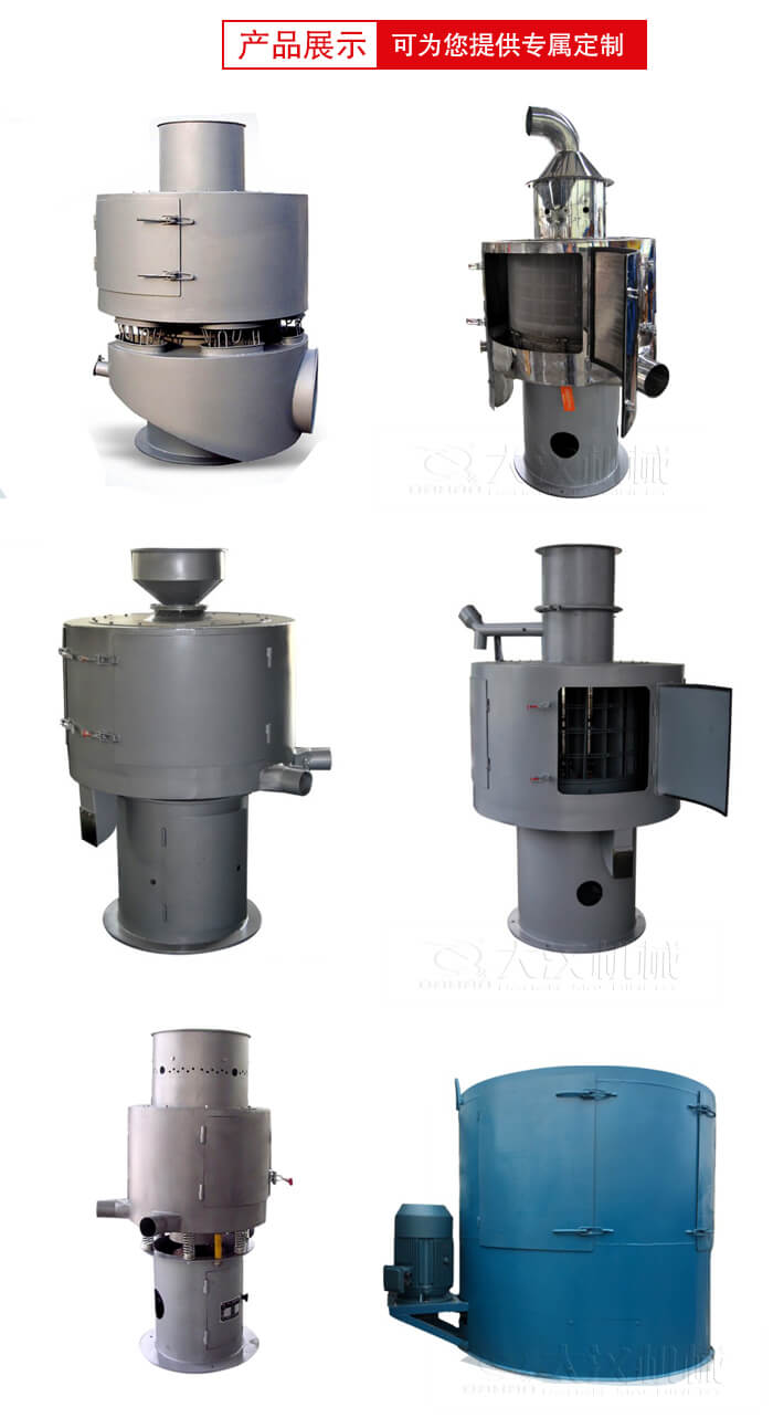 气流筛:80-530目的各种粉状物料筛选分级,适用于橡胶粉,脱水蔬菜粉,食盐,化肥,玻璃粉,硫磺粉,铅粉,石英粉,铜粉,铝粉等物料中。